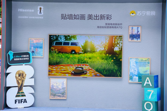 发布会现场还展示了海信贴贴壁画电视A7Q,其拥有2.99cm超薄机身,采用可随心更换的磁吸画框,内置海量艺术内容,宛如一面“会呼吸的墙“,令客厅倍增生活美学气息。