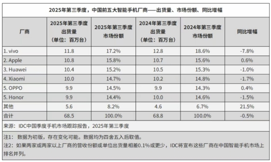 根据IDC最新2025Q3的数据,苹果竟然是增长最高的有统计品牌,可能是因为国产品牌的手机SUK实在是太多了,面对琳琅满目的安卓机型感到选择困难?别担心,苹果iPhone简洁的产品线为我们提供了绝佳的参照系。这篇指南将最新的iPhone 17系列作为标杆,帮你快速梳理各安卓品牌在相同定位下的热门机型,让你一眼看懂如何选择,轻松找到最适合自己的那一款。