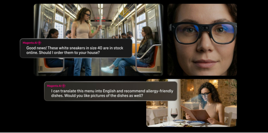 雷鸟X3 Pro作为全球最小可量产的双目全彩MicroLED光波导AR眼镜,其技术成熟度与量产能力为电信运营商探索下一代入口设备提供了坚实平台。这款基于雷鸟X3 Pro打造的AI眼镜,集成了德国电信Magenta AI的代理式AI智能体(Agentic AI)、视觉和情境辅助等多项技术,基于此,眼镜不仅能够完成物体识别、实时翻译等常规功能,还能实时理解用户所处环境和潜在需求,并自主完成复杂任务,实现“感知即服务”的颠覆性体验。